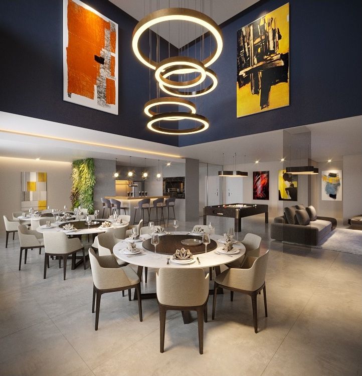 Salão de festas mobiliado e equipado