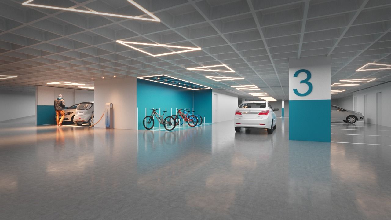 Ponto de recarga para carros elétricos disponível nos 3 subsolos